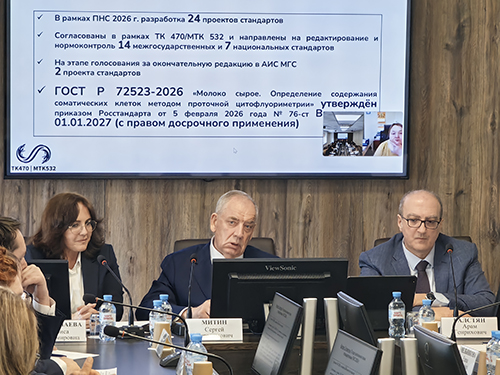 В рамках заседания были рассмотрены итоги работы ТК 470 в 2025 г., выполнение ТК 470 плана стандартизации ПНС 2026, формирование предложений ТК 470 в ПНС 2027 г. и вопросы актуализации состава комитета. Общим решением комитета была отмечена хорошая работа комитета в 2025 г по разработке и согласованию 38 проектов межгосудартсвенных и национальных стандартов (ГОСТ и ГОСТ Р), утверждение в 2025 г 14 новых и актуализированных национальных и межгосудартсвенных стандартов, в том числе впервые разработанных инновационных стандартов на продукты глубокого фракционирования молока, используемые для детского молочного питания. Членами комитета доложены планы на 2026 г по подготовке к утверждению проектов окончательных редакций ГОСТ и ГОСТ Р, обсужден алгоритм составления в ТК 470 приоритетных тем и сроков подачи предложений в Программу национальной стандартизации на 2027 г.